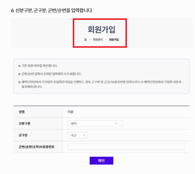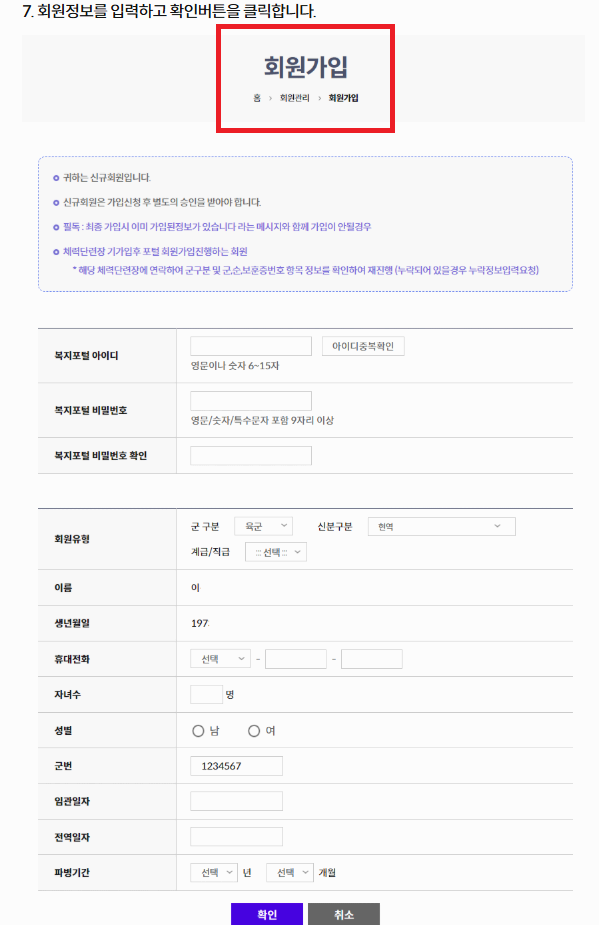 국군복지포탈 사이트 회원가입 방법