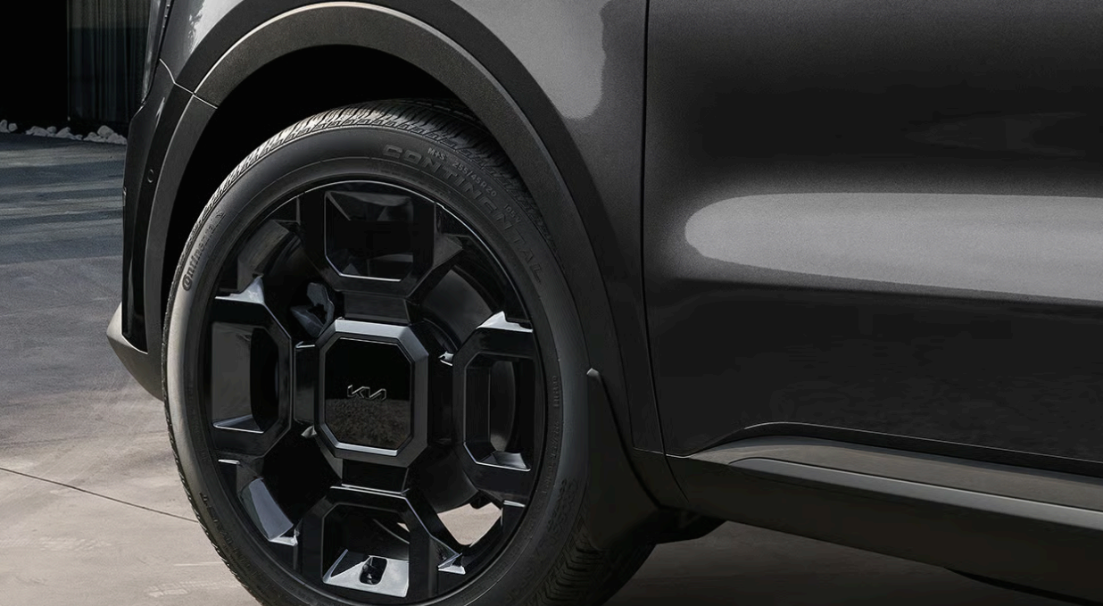 이 그릴은 차가 더 멋지고 세련되게 보이도록 만들어졌습니다. 그리고 2026 쏘렌토 하이브리드 바퀴에 달린 휠도 하이브리드 전용 디자인으로, 특별한 무늬와 모양이 들어가 있어서 한눈에 하이브리드 모델이라는 것을 알 수 있습니다.