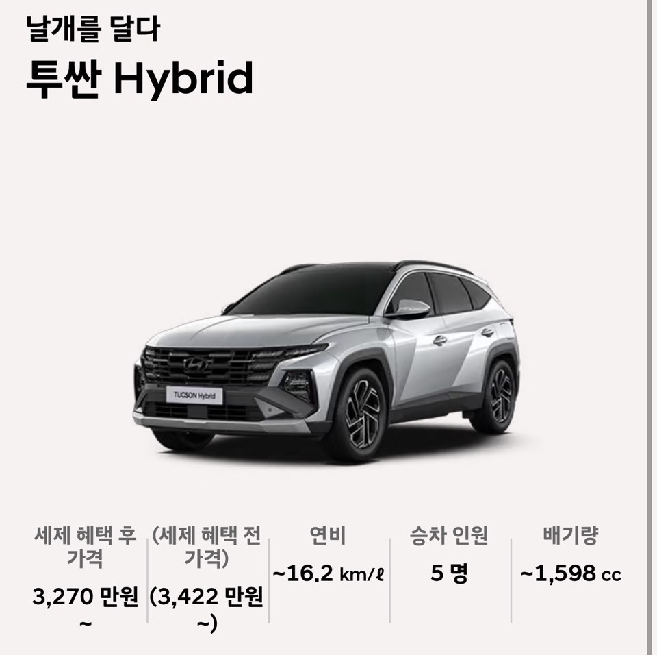 2026년형 투싼 하이브리드 가격, 제원 , 모의견적을