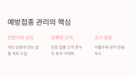 접종 간격을 정확히 지키는 것이 예방 효과를 최대화하는 핵심입니다.