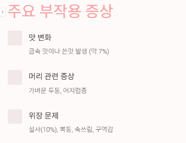 금속 맛 같은 부작용이 생길 수 있습니다.