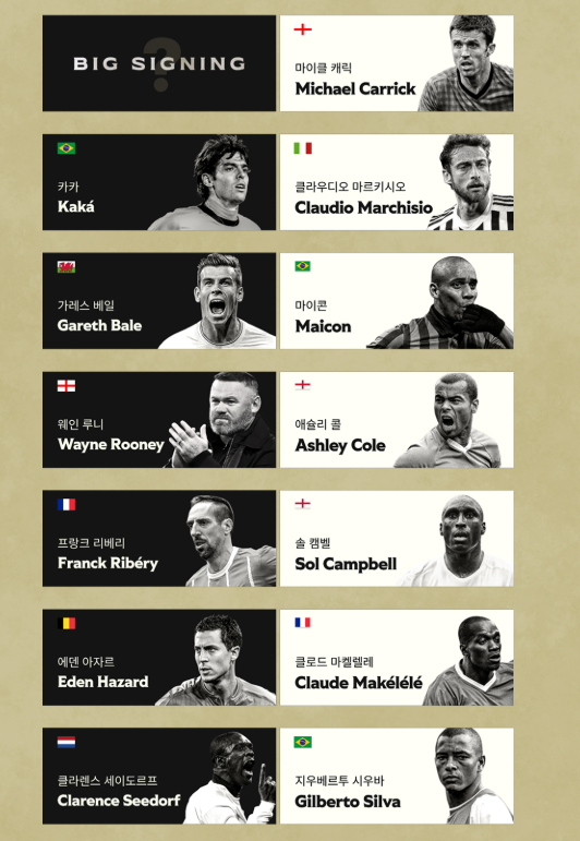 여기에 푸욜, 비디치, 리오 퍼디난드 같은 세계적인