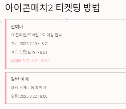 이번 아이콘매치2를 제대로 즐기려면 티켓팅 준비가 아주 중요합니다.