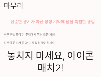 바로 아래에서 아이콘매치 티켓팅