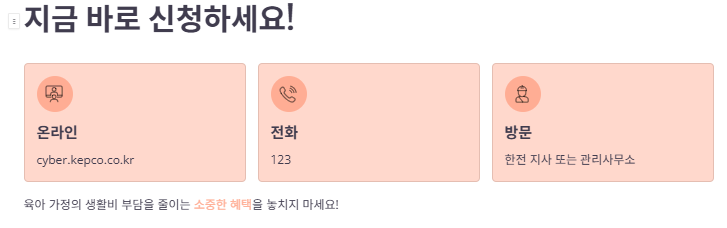 바로 아래에서는 신생아 전기세 감면 신청 방법에 대해서 알아보시기 바랍니다.
