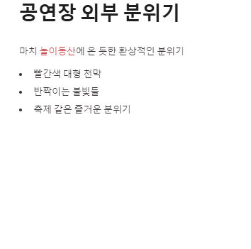 그래서 공연을 보기 전에 가족이나 친구랑 기념사진을 찍기에 아주 좋습니다.