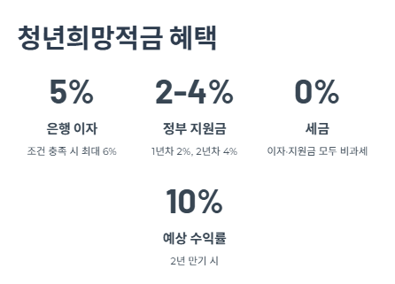기본 혜택 은행 이자 + 정부 지원금 + 비과세 혜택