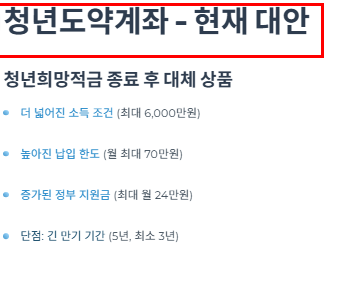 대신 현재는 청년도약계좌라는 후속 상품이 운영되고 있습니다.