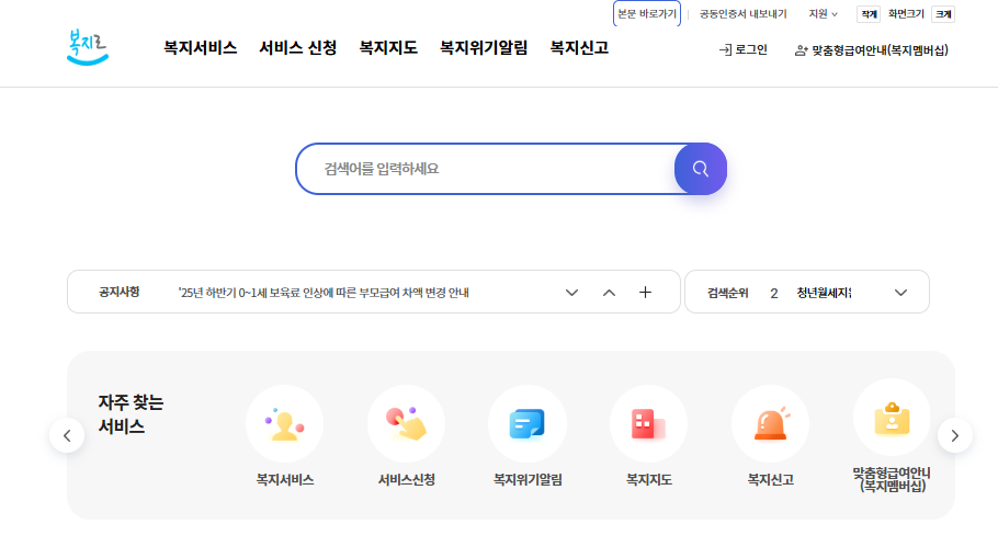 첫째, 복지로 홈페이지에 접속해서 대상포진